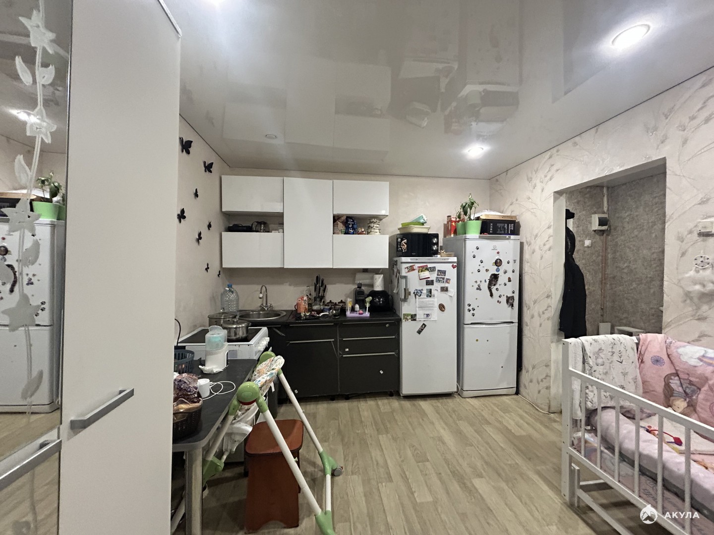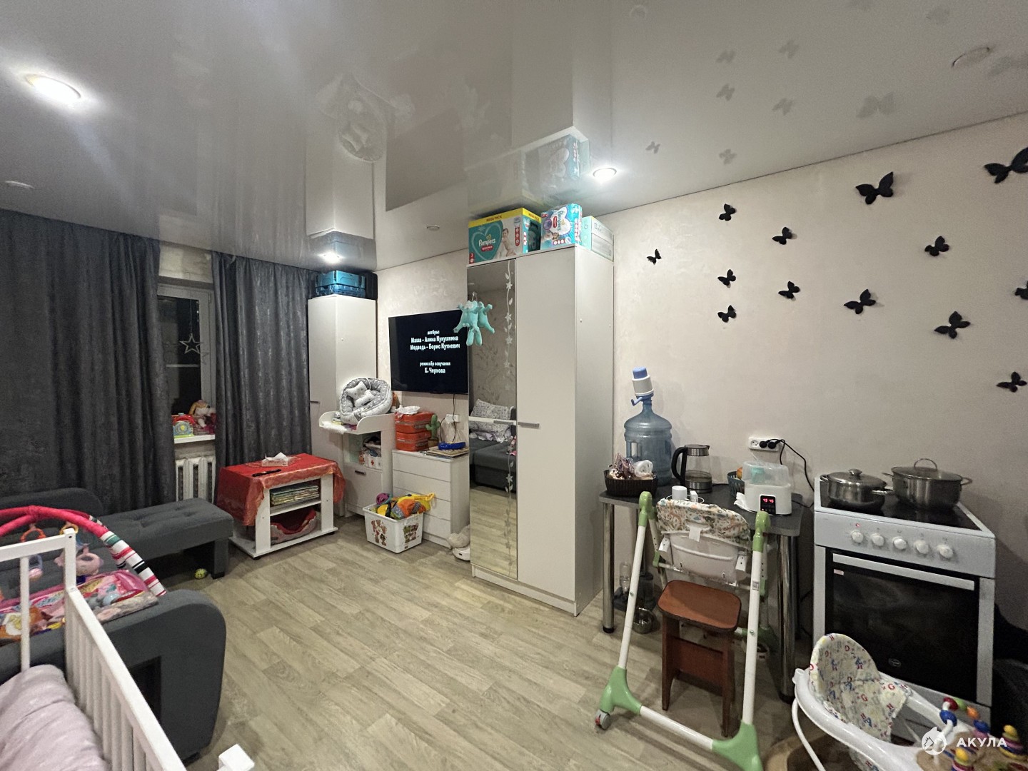 В квартире сделан частично капитальный ремонт: новые полы, натяжные потолки, электропроводка, стеклопакеты.