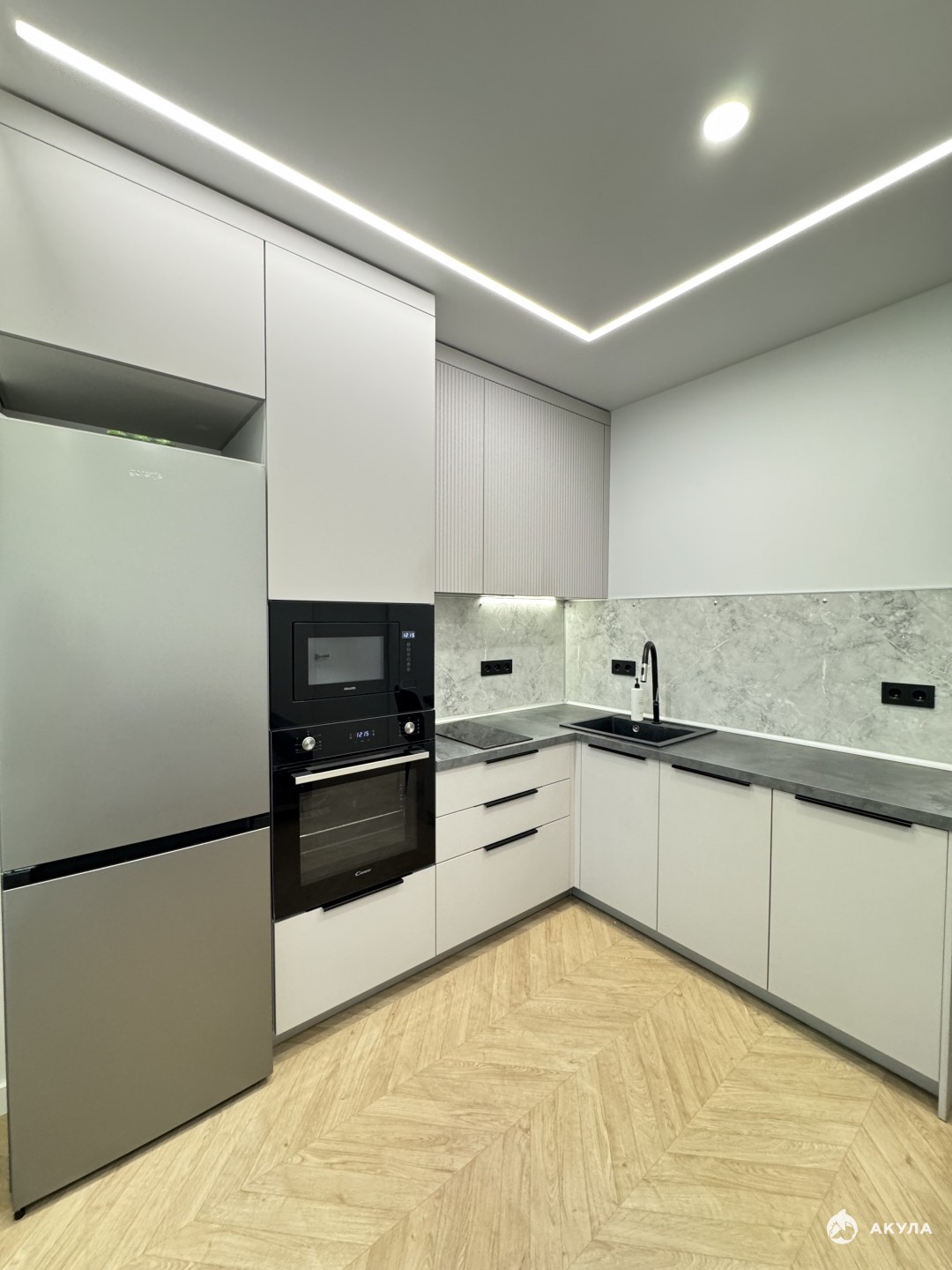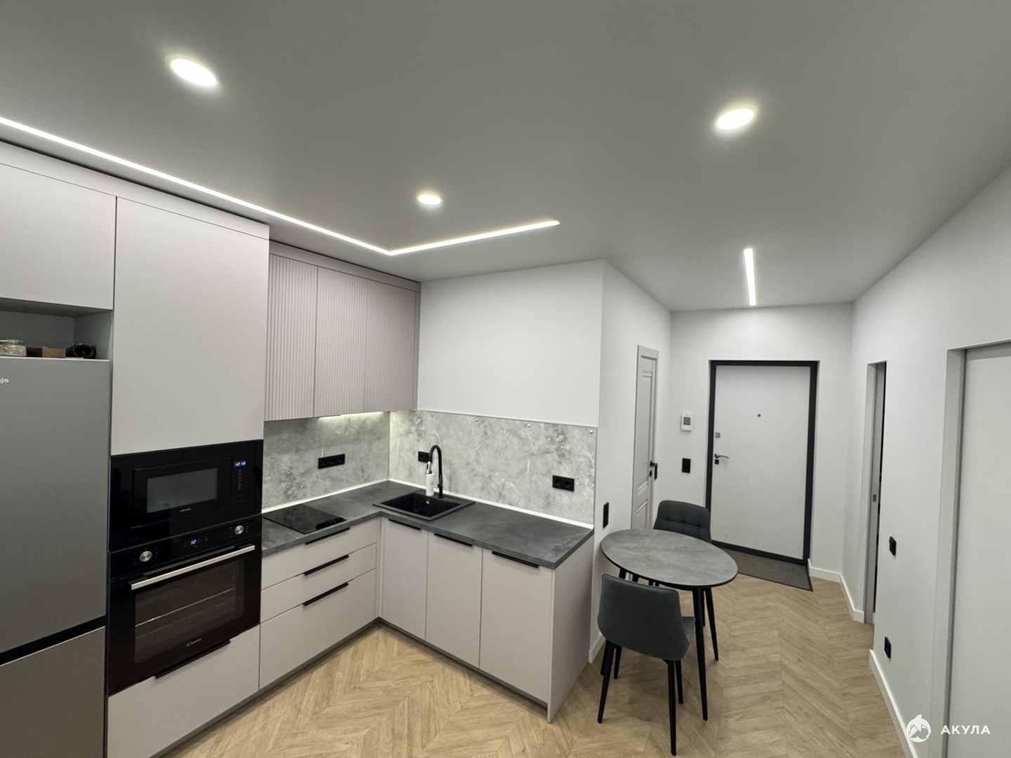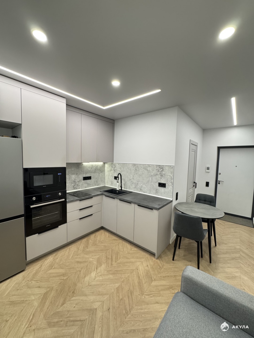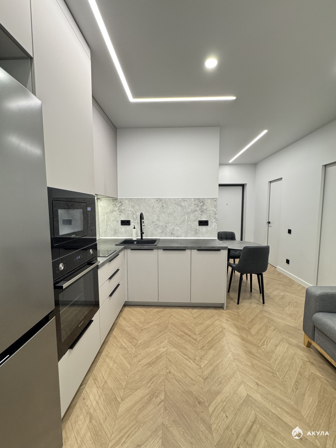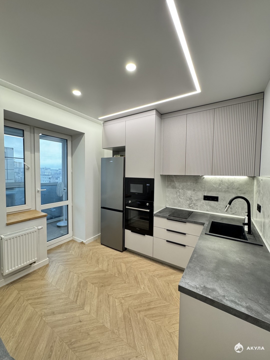 Балкон утеплен радиаторами, теплым полом, вторым контуром окна. На кухне посудомоечная машина, духовка, микроволновка, холодильник, 2-конф индукционная плита, фасады с системой push. В ванной проточный водонагреватель, стиральная, сушильная машина.